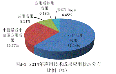 表3-1 2012-2014年地区产业化应用的成果比例分布(%)