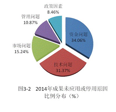 表3-2 2014年地区成果未应用及应用后停用原因的比例分布(%)