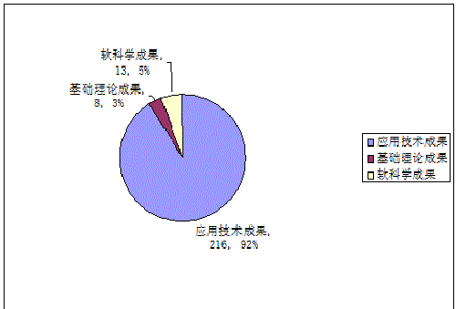 今年登记的237项科技成果中,应用技术成果216项,占成果总数的92%;基础理论成果8项,占成果总数的3%;软科学成果13项,占成果总数的5%。