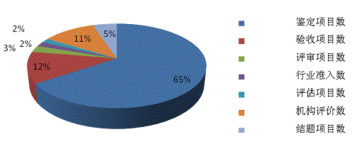 从评价类型来看,鉴定项目数为1939项,验收项目数为355项,评审项目数为76项,机构评价数为333项,结题项目数152项。我省现有登记成果仍以鉴定项目为主,占到了总数的65.62%。
