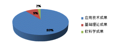 从科技成果类别来看,2014年全省登记的科技成果仍以应用技术类成果为主。具体来看,应用技术类成果数量为2641项,基础理论成果257项,软科学研究类57项。应用技术类成果占到了总数的89.37%。