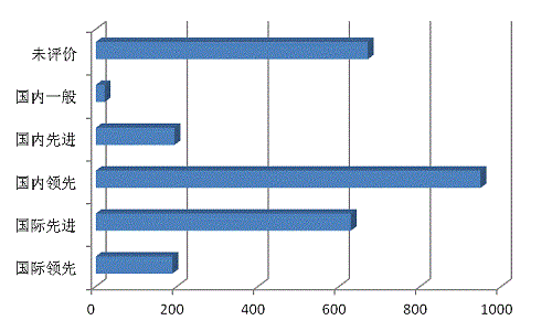 从登记应用技术成果的水平来看,评价为国际领先水平的有189项,评价为国际先进水平的629项,评价为国内领先的成果950项,评价为国内先进的成果194项,评价为国内一般水平的成果22项,未评价657项。被评价为国内先进水平以上的应用技术成果占总数的74.29%。2014年山东省登记成果显示出较高水平。