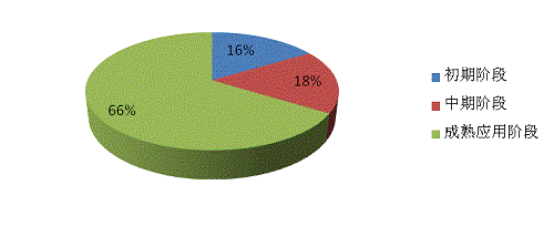 从登记成果所处阶段来看,山东省登记科技成果已处于成熟应用阶段的成果为1752项,处于初期阶段的434项,处于中期阶段的455项。我省科技成果大多数已进入了成熟应用阶段,占到了总数的66.34%。