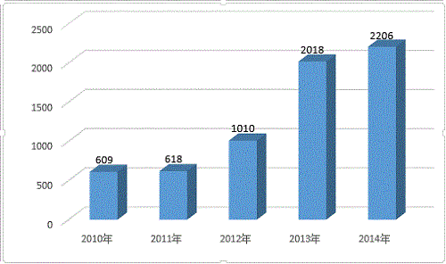 表1 2010-2014年四川省科技成果登记数量