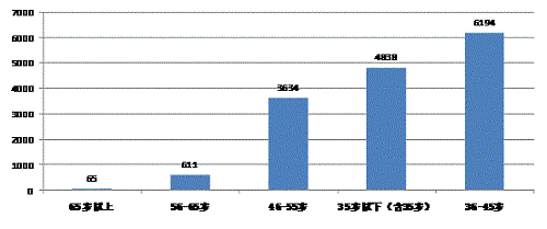图11 2014年陕西省登记成果完成人员年龄结构(人次)
