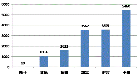 图9 2014年陕西省登记成果完成人员文化程度结构(人次)