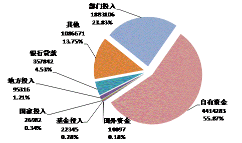 经费投入结构与上年相比有较大变化,其表现在外国资金投入剧增,上年国外资金投入为203万元,今年投入达14097万元。政府投入则相对下降,较2013年减少40.17%。