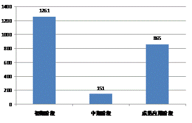 2014年登记的应用技术成果中,处于成熟应用阶段的成果有865项,占37.99%;有151项成果处于中期阶段,占6.63%;有1261项成果处于初期阶段,占55.38%(见图18)。与2013年相比,成果所处阶段比例结构有较大变化,上年成熟应用阶段成果占绝大部分(占比达93.67%),而初级阶段成果仅占2.54%。