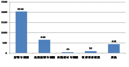2014年共获得3257项知识产权,其中获得发明专利数2036项,占总数的62.51%;实用新型专利数646项,占19.83%;外观设计专利45项,占1.38%;软件著作权数92项,占2.83%;其他438项,占13.45%(见图20)。