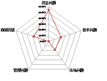 2014年陕西省登记有22项未应用成果,较2013年有所上升。对22项未应用成果的影响因素进行统计表明:55%的未应用成果受到资金问题的影响;27%的未应用成果受到政策因素的影响;23%的未应用成果受到技术问题的影响;18%的未应用成果受到市场问题的影响;所有未应用成果均未受管理问题的影响;其中个别未应用成果同时受两个或两个以上因素影响(见图26)。成果未应用的原因以资金问题为主,其次是政策因素,同时受技术、市场等多种因素综合影响。