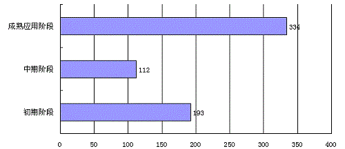 处于成熟应用阶段的成果为334项,占登记的应用技术成果总量的52.27%;处于中期阶段和初期阶段的应用技术成果分别为112项和193项,分别占17.53%和30.20%(见图7)。