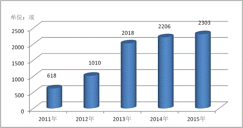 表1 2011-2015年四川省科技成果登记数量 单位:项