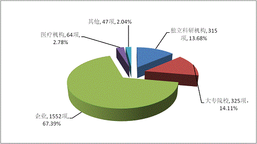 成果历时数年,且研究时间跨度不等,所以以上数据反映的不是当年经费投入情况,而是2015年度登记的科技成果某阶段