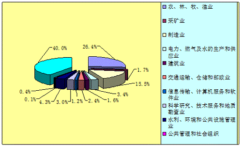 按产业分布。对769项应用技术成果按应用行业进行分类分析可以看出,应用于第一产业的农、林、牧、渔业的成果有203项,占该项统计数的26.4%;采矿业13项,占1.7%;制造业119项,占15.5%;电力、燃气及水的生产和供应业26项,占3.4%;建筑业12项,占1.6%;交通运输、仓储和邮政业19项,占2.4%;信息传输、计算机服务和软件业9项,占1.2%;科学研究、技术服务和地质勘查业23项,占3.0%;水利、环境和公共设施管理业33项,占4.3%;公共管理和社会组织1项,占0.1%;教育行业3项,占0.4%;卫生、社会保障和社会福利业307项,占40.0%;文化、体育和娱乐业1项,占0.1%,农、林、牧、渔业较上年增加了41项增加比较明显,制造业、电力和燃气及水电额生产和供应业、建筑业等同比上年均有不同程度的增加(见图5)。
