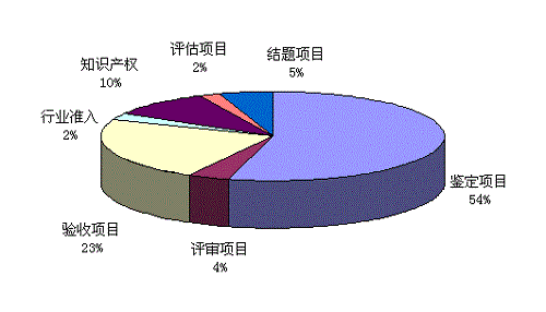 2009年全省共登记科技成果675项,其中:经各市及省有关部门组织鉴定的项目365项,占登记成果总数的54%;验收项目156项,占23%;评审项目26项,占4%;知识产权65项,占10%;结题项目34项,占5%。