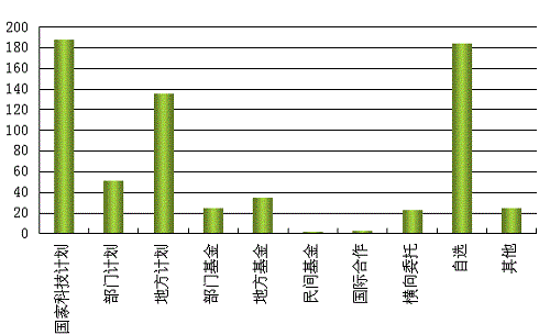 本年度统计的科技成果中,国家科技计划项目188项,占29%;部门计划项目51项目,占8%;地方计划项目136项,占20%;自选项目184项,占27%。国家科技计划、地方计划、自选项目是课题的主要来源。