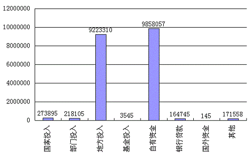 经统计,2009年登记项目总经费实际投入额为19913360万元,其中,国家投入273895万元,占1%;部门投入218105万元,占1%;地方投入9223310万元,占46%;自有资金9858057万元,占50%;自有资金与地方投入比例占主要部分。