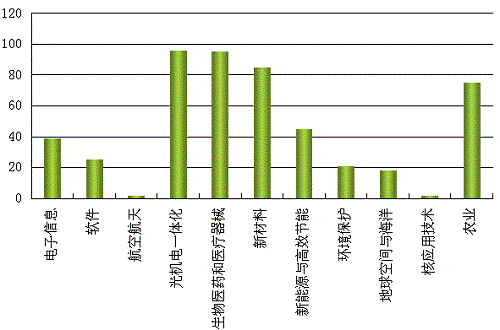 在登记的应用技术成果中,电子信息39项,软件25项,航空航天2项,光机电一体化96项,生物、医药和医疗器械95项,新材料85项,新能源与高效节能45项,环境保护21项,地球、空间与海洋18项,核应用技术2项,农业75项。其中,我省科技发展的重点领域:光机电一体化、生物医药和医疗器械、新材料、农业占主要部分。