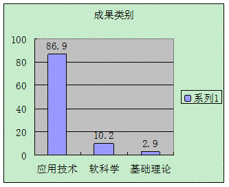 在登记的科技成果中,应用技术成果186项约占86.9%,软科学成果22项约占10.2%,基础理论成果6项约占2.9%。