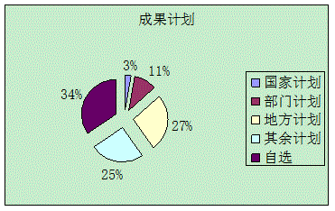 国家计划6项约占总数的2.8%,部门计划23项约占10.7%,地方计划57项约占26.7%,而其余计划53项约占24.7%,自选75项约占35.1%。地方计划和自选项目占较大部分,科研水平较高的科研机构和单位才能获得国家计划,而只有符合条件的单位才能得到为数不多的基金课题。