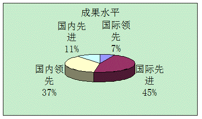 在登记的186项应用成果中,国际领先水平12项约占6.6%,国际先进86项约占总数的46.2%,国内领先水平68项占36.5%,国内先进水平20项占10.7%。