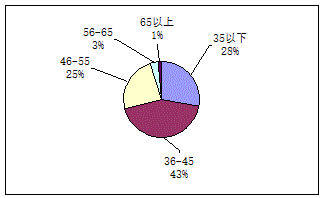 按科技成果完成人员按年龄统计:35岁以下为1641人,36-45岁为2472人,46-55岁为1437人,56-65岁为204人,65岁以上为79人。可以看出35岁以下和36-45岁的科技人员是承担科技成果研发工作的主体。