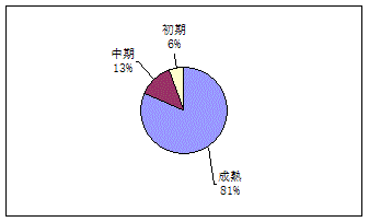 在583项应用技术成果中,处于成熟应用阶段的成果475项,占81%;处于中试或设备的样机、试样等中期阶段的成果75项,占13%;处于实验室、小试等初期阶段的成果33项,占6%。