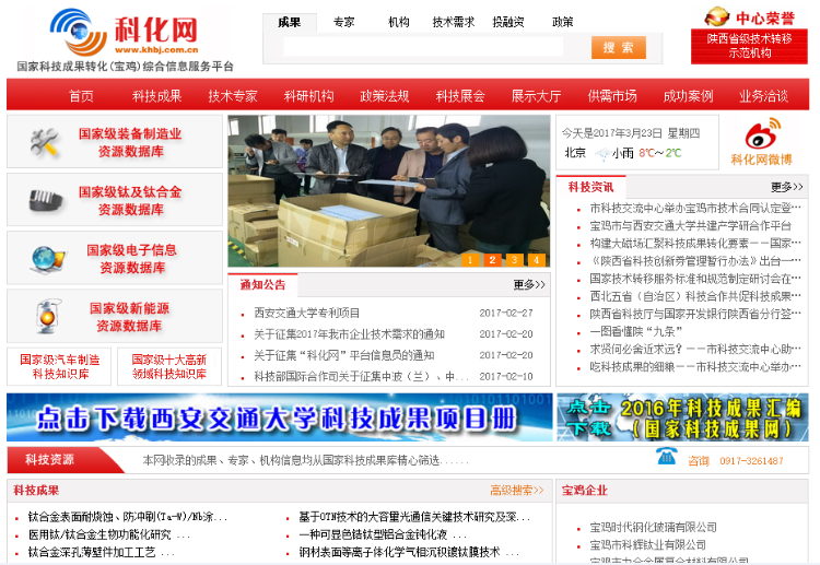 国家科技成果转化服务(宝鸡)示范基地综合信息服务平台——科化网(www.khbj.com.cn)