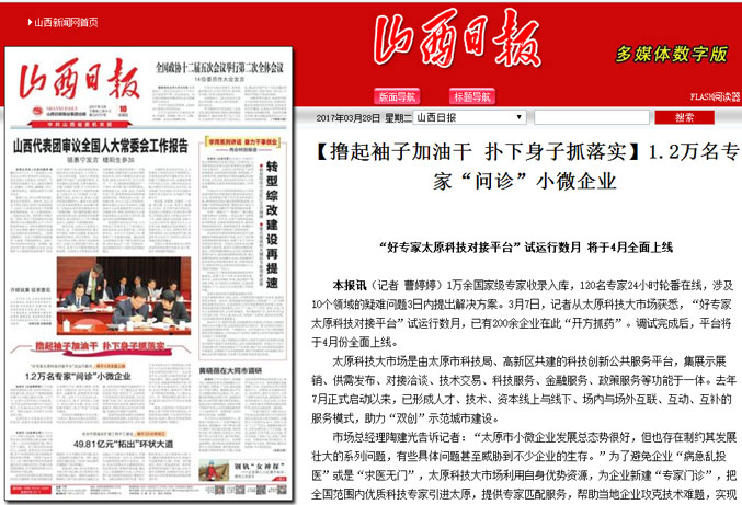 市场总经理陶建光告诉记者:“太原市小微企业发展总态势很好,但也存在制约其发展壮大的系列问题,有些具体问题甚至威胁到不少企业的生存。”为了避免企业“病急乱投医”或是“求医无门”,太原科技大市场利用自身优势资源,为企业新建“专家门诊”,把全国范围内优质科技专家引进太原,提供专家匹配服务,帮助当地企业攻克技术难题,实现技术升级和产业转型。