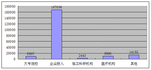 据统计,2016年登记成果的经费实际投入额为203124万元,大专院校投入8807万元,企业投入167696万元,独立科研机构投入为2443万元,医疗机构投入9996万元,其他投入14182万元。其中企业经费投入较大,独立科研机构及医疗机构等单位经费投入较少。