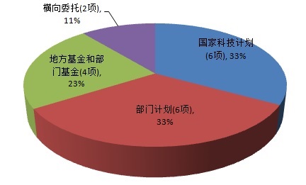 来源于国家科技计划的成果6项,占33%;部门计划成果6项,占33%(见图2)。