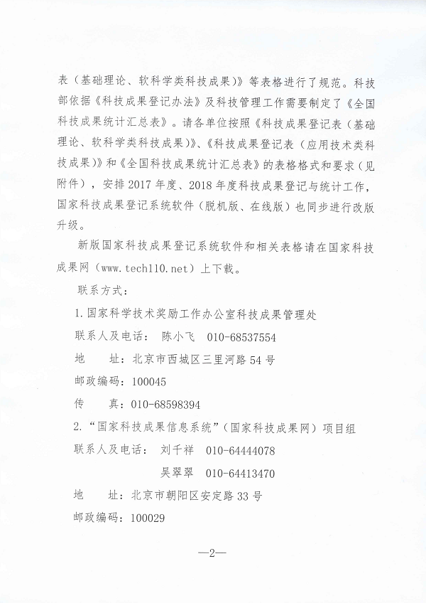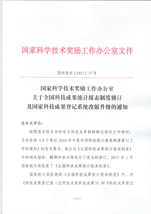 关于全国科技成果统计报表制度修订及国家科技成果登记系统改版升级的通知