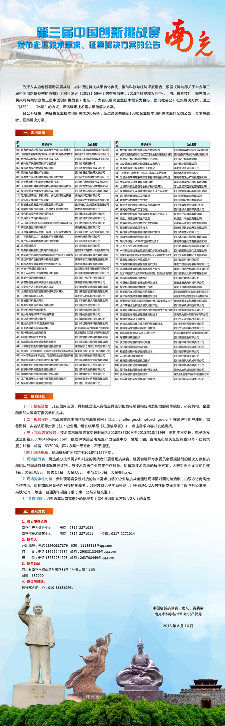 动态 | 第三届中国创新挑战赛(南充)需求公告