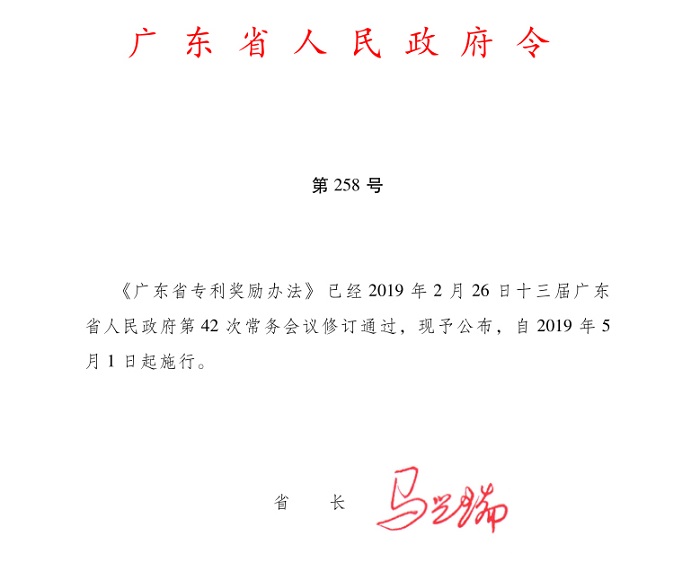 第二十五条 本办法自2019年5月1日起施行。广东省人民政府2014年8月27日公布的《广东省专利奖励办法》(广东省人民政府令第202号)同时废止。