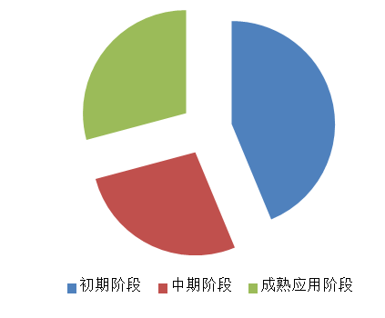 应用技术成果类项目的应用水平达到国际先进、国内领先、国内先进和国内一般的项目分别是1项、16项、13项和3项,未评价为15项。应用技术成果类项目大部分分别处于初期阶段、中期阶段和成熟应用阶段的项目分别为21项、13项和14项。应用成果水平和成果所处阶段分布见图9、10。