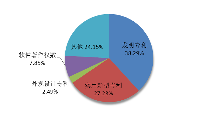 全省登记的科技成果中取得知识产权1528项,其中:发明专利585项,占38.3%;实用新型416项,占27.2%;软件著作权120项,占7.9%;外观设计38项,占2.5%;其他369项,占24.1%。