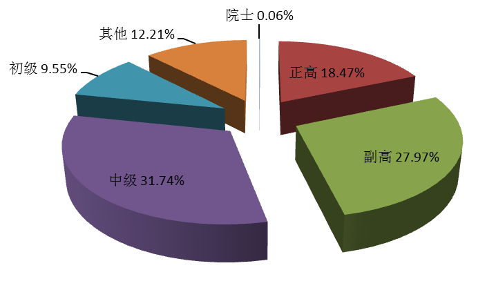 从技术职称结构来看,副高级以上人员为4215人次,占完成人员总数的42.5%,其中包括院士5人次(占0.1%)、正高级1600人次(占16.1%)、副高级2610人次(占26.3%);中级职称3274人次,占33.0%;初级职称1122人次,占11.3%;其他1315人次,占13.3%。