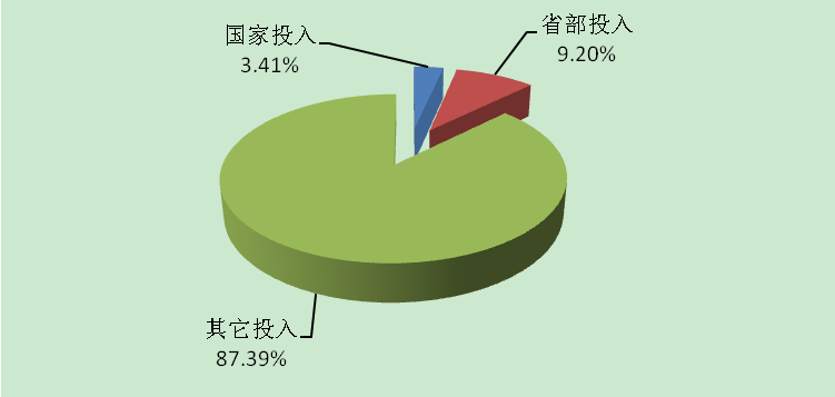 2018年度河南省登记的1434项成果中,共投入资金54.4367亿元,其中国家投入1.8575亿元,占3.41%;省部级投入5.0088亿元,占9.20%;其它资金投入47.5704亿元,占87.39%。项目资金投入主要来自于项目承担单位。