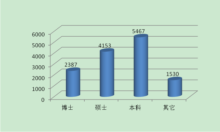 2018年度河南省登记的1434项成果中,项目完成人共有13537人,其中博士生2387人,占17.63%;硕士生4153人,占30.68%;本科生5467人,占40.39%;其它学历1530人,占11.30%。