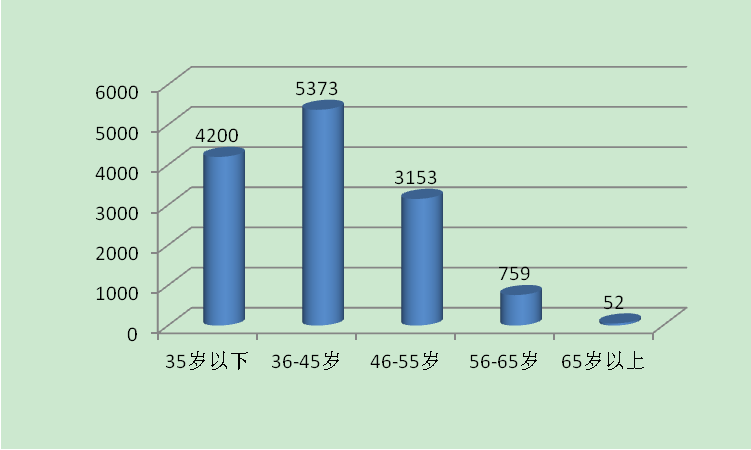 项目完成人中35岁以下人员4200人,占31.03%;36-45岁人员5373人,占39.69%;46-55岁人员3153人,占23.29%;56-65岁人员759人,占5.61%;65岁以上人员52人,占0.38%。