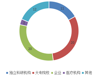 按科技成果完成单位分,大专院校和企业是完成单位的主力军,共占比61.6%。