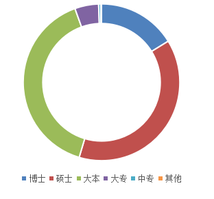 学历中,博士占比16.2%、硕士占比38.4%、大本占比39.9%。
