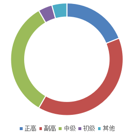 职称中,正高占比18.9%,同比下降9.0个百分点;副高占比39.4%,同比上升2.4个百分点;中级占比33.3%,同比上升5.9个百分点。