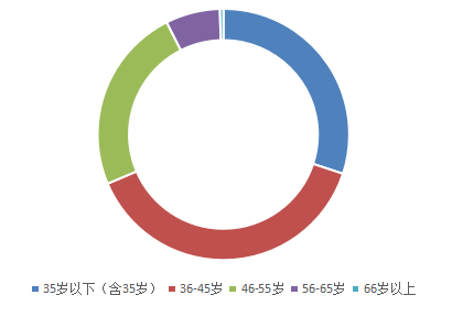 年龄中,35岁以下(含35岁)占比30.1%,同比上升2.6个百分点;36-45岁占比38.5%,同比上升3.4个百分点;46-55岁占比24.6%,同比下降6.6个百分点。