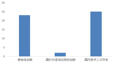 2018年,50项应用成果中,原始性创新成果23项、国外引进消化吸收创新成果2项、国内技术二次开发成果25项,占比分别为46%、4%和50%。