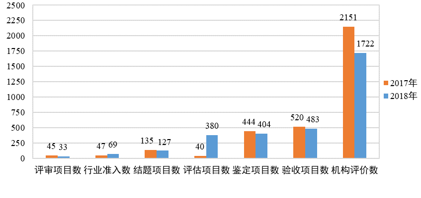 图9  2017-2018年陕西省登记成果水平(项)