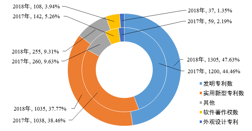 图5  2017-2018年陕西省登记成果知识产权构成(项)