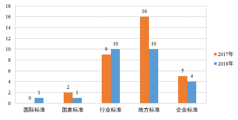 2018年陕西省登记的科技成果中共涉及标准制订26项。其中,国际和国家标准各1项,行业和地方标准各10项,企业标准4项(见图6)。