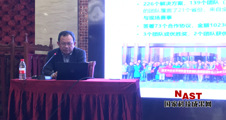 国家科技成果网主任吴昌权在现场介绍解决方案征集服务模式