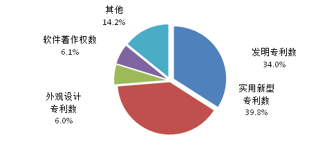全省登记的科技成果中取得知识产权2148项,其中:实用新型854项,占39.8%;发明专利731项,占34.0%;软件著作权130项,占6.1%;外观设计129项,占6.0%;其他304项,占14.2%。